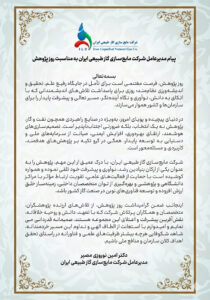 اینجانب ضمن گرامیداشت روز پژوهش، از تلاشهای ارزنده پژوهشگران، متخصصان و همکاران پرتلاش شرکت که با تعهد، دانش و روحیه خلاقانه، نقشآفرین پیشرفت و اعتلای این مجموعه هستند، صمیمانه قدردانی مینمایم و امیدوارم با استعانت از الطاف الهی و تداوم این مسیر خردمندانه، شاهد شکوفایی هرچه بیشتر ظرفیتهای علمی و فناورانه در راستای تحقق اهداف کلان سازمان و منافع ملی باشیم.